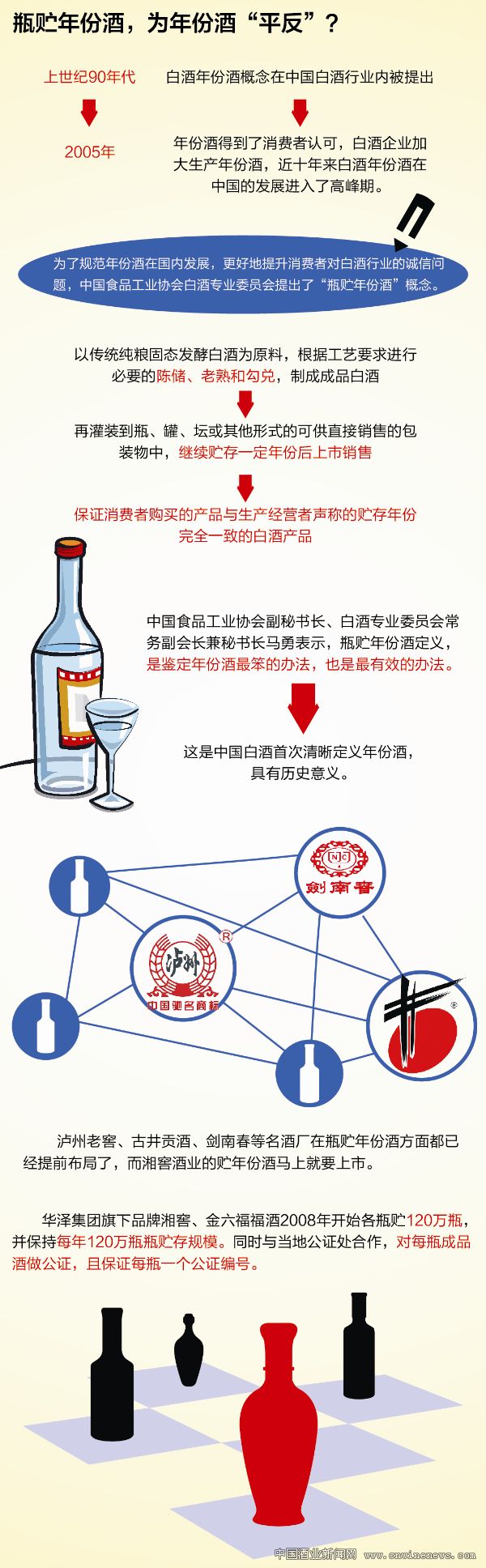 瓶贮年份酒解决了消费者的顾虑。“瓶贮年份酒得到了行业专家的认可,大家认为这是一个积极解决年份酒不诚信的方法,初步确定后,尽快出台相关的规范,为企业向市场推出瓶贮年份酒做好保障。”马勇表示,泸州老窖、古井贡酒、剑南春等名酒厂在瓶贮年份酒方面都已经提前布局了,而湘窖酒业的贮年份酒马上就要上市。