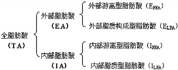 从对有机溶剂抽出上的不同把脂质分类(详见脂肪酸分类图),分别以脂肪酸的量表示,为便于与各制造工序间对比,其定量值都换算成对白米干物的脂肪酸重量(毫克)为单位。括号内为本文所使用的略号。