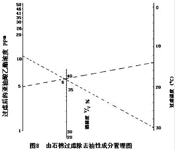 西谷依据溶解度式制作了由石棉过滤除去油性成分管理图(见图8),使用比较方便。