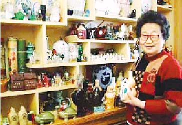 家住大连星海湾街道连山社区附近的李庆云大妈是一位视酒瓶子如宝的人,她家整个屋子里摆满了样式各异的酒瓶藏品,酒瓶子有葫芦形、竹子形、房屋形以及动物造型、人物造型;质地有陶瓷、紫砂、白砂等等。