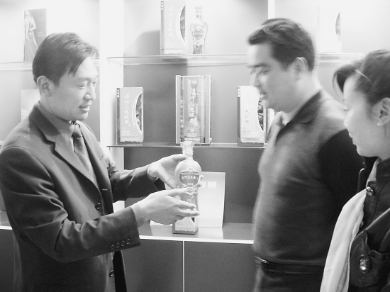 作为洋河蓝色经典烟台地区总经销,烟台心连心酒业有限公司通过“团购+酒店”的营销模式,在短短半年时间里就占领了文章来源华夏酒报烟台高端酒市场,实现销售收入130多万元。图为该公司总经理荀雷(左一)在向客户推介洋河蓝色经典系列酒。