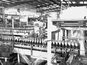 为满足夏季啤酒销售旺季的市场需要,山东大陆酒业公司加班加点,图为该公司车间工人正在包装“沂蒙山”啤酒。