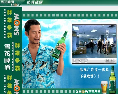 当前,雪花啤酒用于网络广告的投入已经超过了几百万元,从数额上已略具规模。虽然这在整体广告投入中所占的比例还不足10%,但投入产出比却要优于电视广告,所达到的效果要远超过10%。根据监测数据,雪花网络广告高峰时期的点击率达到了100多万人次。