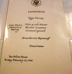 第三件:约翰逊倡导的“像林肯那样献身”的宴会菜单时间:1965年2月12日