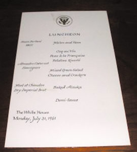 第一件:肯尼迪宴请陈诚的菜单时间:1961年7月31日