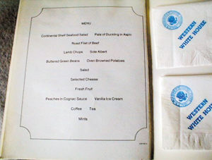 从1960年到1970年初期这10多年的时间里,美国的35、36和37三任总统在白宫里面吃什么、喝什么?1972年尼克松来中国时怎样吃喝、中方宴请他的国宴吃的是什么?笔者试用收藏的6个菜单来解读这些问题。笔者对这些菜单的评价是:精美绝伦、稀世罕见、见证历史、不可重复。