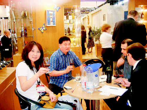烟台威斯诺·查尔斯酒业有限公司在不断打造自身品牌的同时,积极探讨与国外著名葡萄酒企业的合作,走产品差异化之路。近日,公司与法国西夫拉姆集团合作的高端品牌“拉姆世家”正式推向市场,取得了良好的成效。今年上半年,公司实现销售收入5000多万元。图为该公司董事长鲁文章来源华夏酒报祥云(右二)在“2007国际葡萄酒及烈酒展览会”上与法国西夫拉姆集团高层洽谈。
