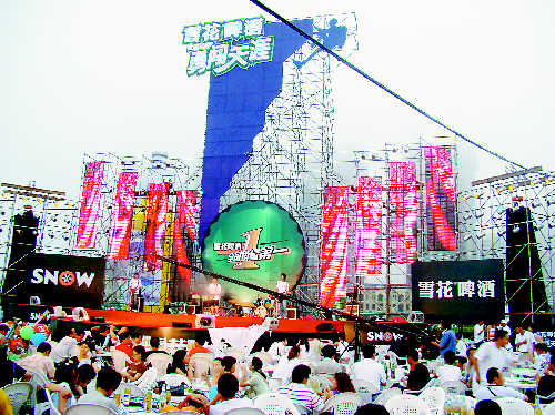 &nbs文章来源华夏酒报p; 7月26日,2007中国国际啤酒节在辽宁省大连市星海广场开幕。啤酒节吸引了30多个啤酒商、200多种啤酒、30万人。在孙楠、红樱束等明星的倾情欢唱中,大连市民与来自世界各地的宾朋共同演绎着啤酒节火热的狂欢激情。