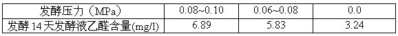表4 不同发酵压力发酵液乙醛含量比较