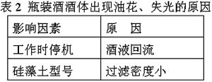 2 瓶装酒酒体出现油花、失光的原因及解决办法(见表2)