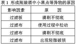 1 瓶装酒出现小黑点等异物的原因及解决办法(见表1)