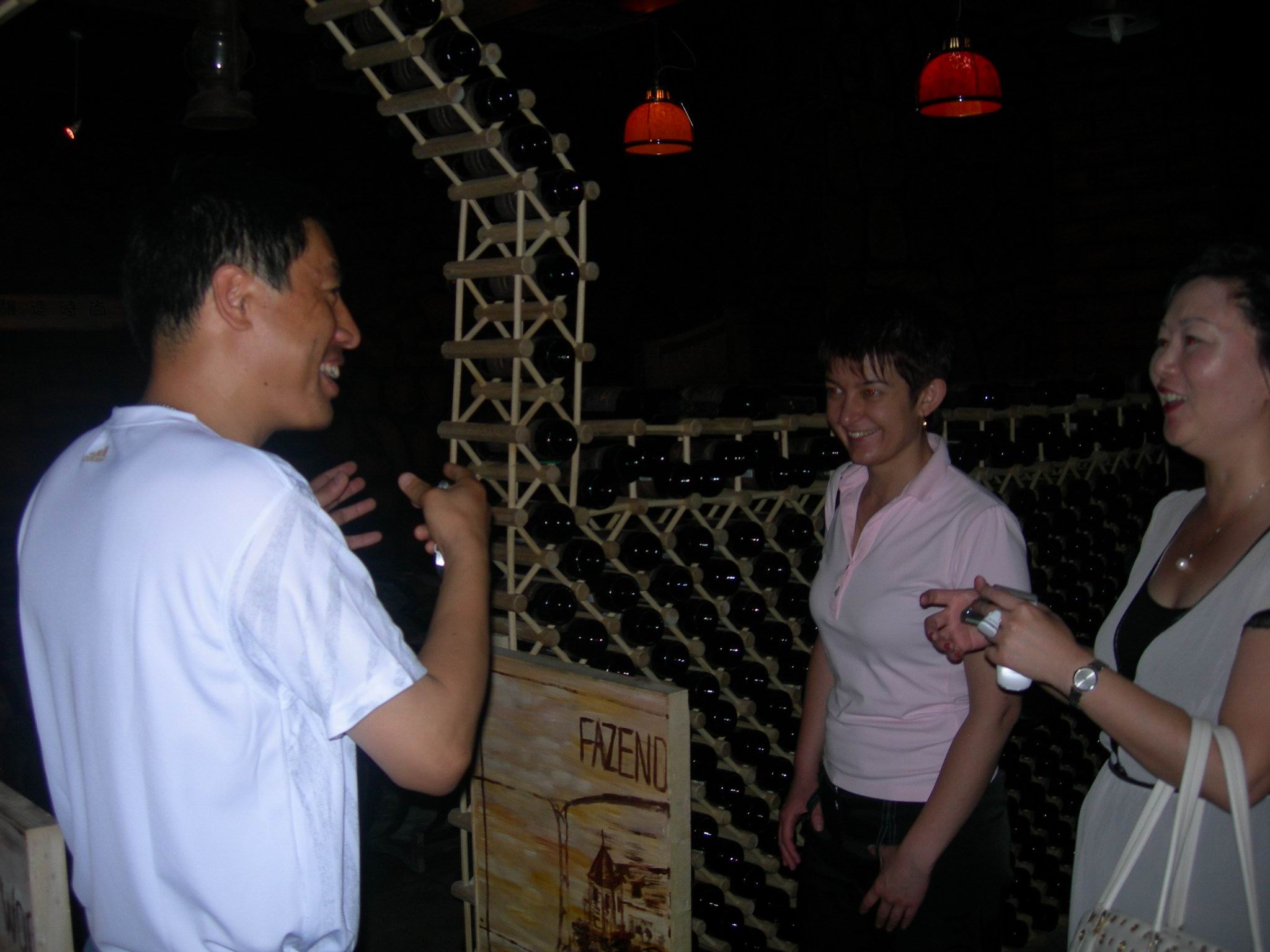 烟台欧华庄园诺王堡葡萄酒展示中心自6月9日开业以来,以休闲、时尚的方式向来宾推介宣传葡萄酒知识,吸引了业内人士和普通消费者的关注,前来品酒和鉴赏的顾客与日俱增。图为总经理王伟(左一)正在向保加利亚客人安沛亚女士(中)介绍地下酒窖概况。  文章来源华夏酒报;