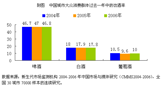附图 中国城市大众消费过去一年中的饮酒率