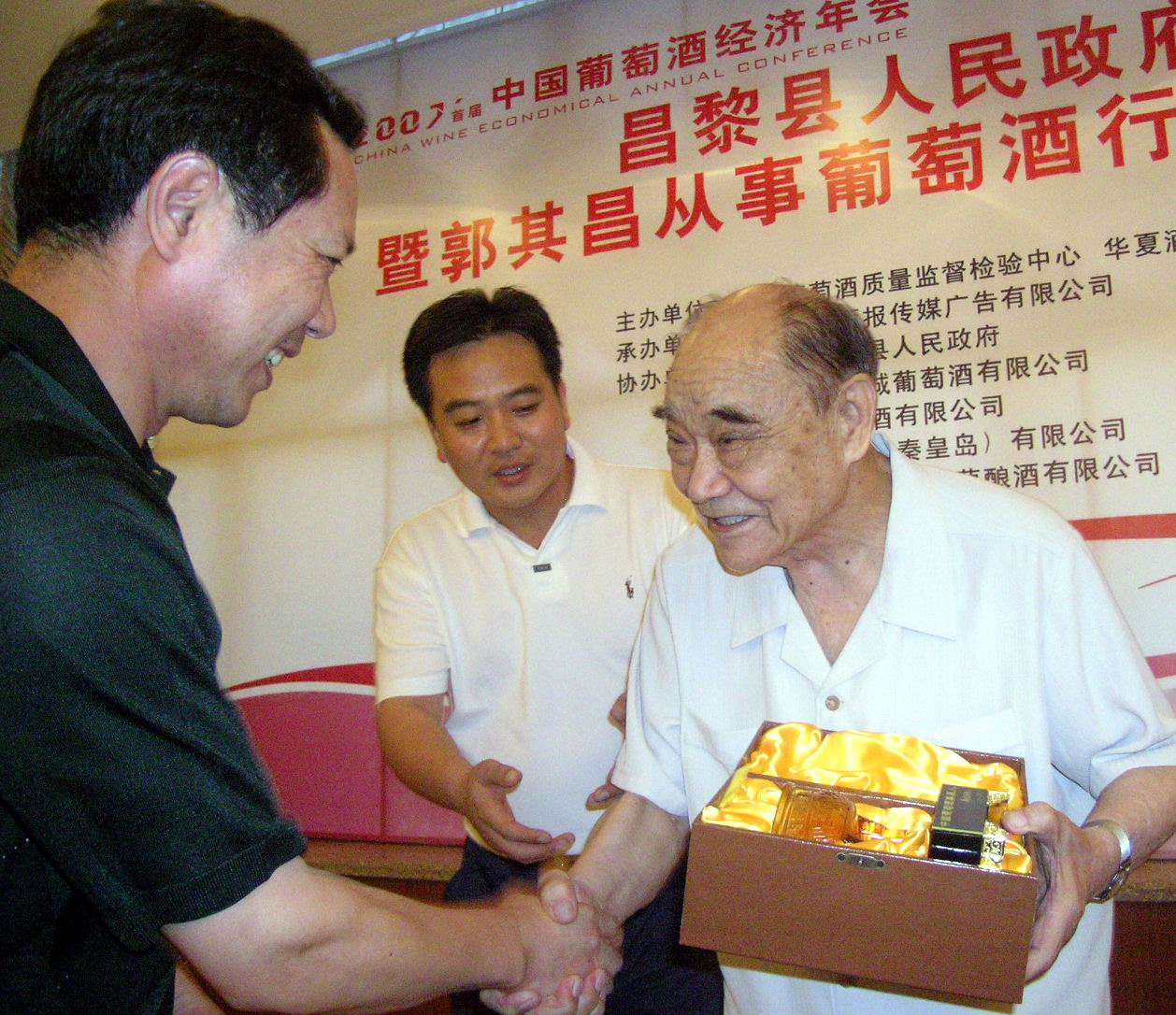 8月19日晚,由河北省昌黎县人民政府、国家葡萄酒质量监督检验中心、华夏酒报社共同举办的“郭其昌从事葡萄酒行业六十年庆祝酒会”在黄金海岸中技度假村宴会厅举行,来自我国酒类管理部门、产区政府、葡萄酒骨干生产企业、流通企业、科技专家、营销专家等300多人到会祝贺。