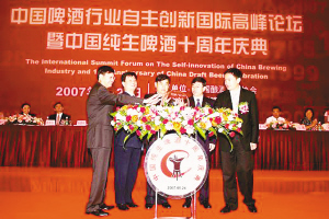 中国食品发酵工业研究院副院长张五九则用十个数文章来源华夏酒报字概括了纯生发展的十年之路,以及中国啤酒工业的科技进步和自主创新水平。他说:“经过十年的发展,啤酒行业取得了十项重要成绩,已经建立了‘三’个国家级啤酒企业技术中心,啤酒行业的技术人员比10年前增加了‘四’倍,以节能降耗为代表的一批循环经济技术已经深入啤酒企业,涌现出一批工业总产值都超过了‘六’亿元的国内知名啤酒生产装备企业,国内申报并获批准与啤酒产业相关的发明专利数是中国有专利制度以来的‘九’倍……”