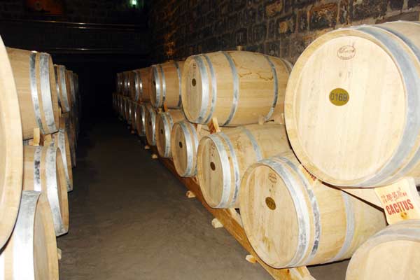 酒窖结合淮北平原的地质特征,采用了半地下结构,由清石拱砌而成,建筑面积约3000平方米,整体高度7.5米,可容纳国际标准橡木桶8000-10000支左右,贮酒量可达6000-8000千升,窖内温度长年保持在15~20℃,湿度在70%~80%之间,窖内温度、湿度相对稳定,是葡萄酒、果酒、白兰地老熟陈酿的理想之处。