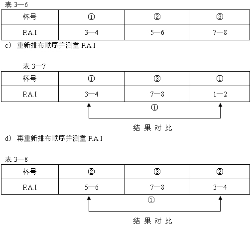 b)按顺序测量P.A.I(见表3-6、表3-7、表3-8)