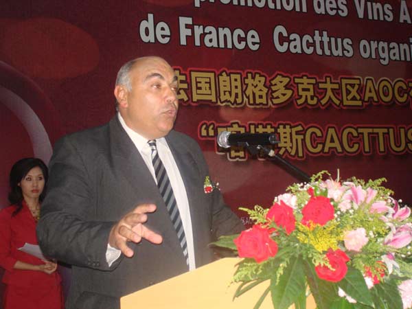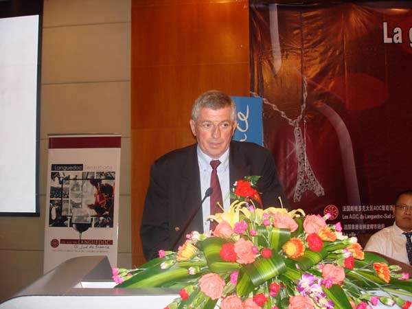 法国奥德省纳波娜市政府常务副市长孟马克在介绍朗格多克的酒文化