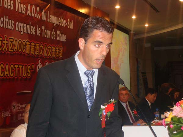 朗格多克-鲁西荣大区葡萄酒酿酒师联合会主席巴戎在介绍