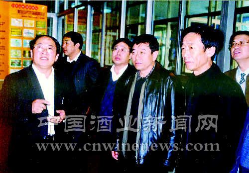 图为王延才、谢宁等在妙府老酒公司生产车间参观考察。