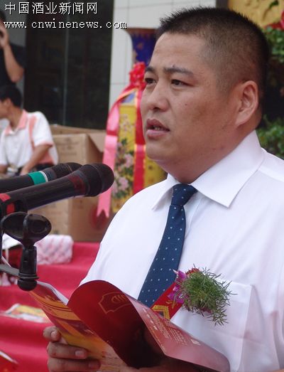 顺和酒行总经理马龙刚在开业庆典上讲话。