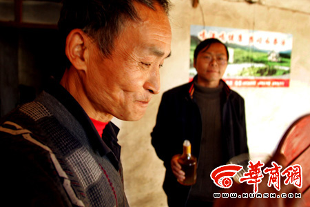 这家酒据说是南方人投资建厂,已两年历史。今日凌晨6时,该酒厂的业务主管童新春等3名工作人员乘车从宁陕直赴镇坪,下午近4时,他们抱着4箱药酒走进周家说明来意。正为网易公布照片一事闹心的周正龙见有人来看望他,很是高兴,当即热情握手、倒水待客。酒厂几名工作人员未落座,拿出几张写有“喝酒喝健康”的酒厂宣传画,当即张贴在周家堂屋的墙上,然后打开几种不同类型的酒,让周正龙一一品尝。
