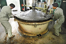 记者看到,他们的年龄虽然都不大,但是,每个人却都有“八年以上独挡一面的酿酒工龄”。忙碌中,每个人的脸上似乎都天然地拥有着熟练和严谨,以及他们那特有的“诚为本、酿为乐、创为魂”的职业感。在频频挥动的手上,那种高端的酿造技术和超乎常人的品酒敏感,伴随着他们那流畅的“润糁、蒸糁、装甑、流酒、发酵、保温”等工序操作,就像车间里那源源不断的原浆酒一样连贯而醇醇地流淌。一脸憨厚、机敏而又沉稳的张师傅说:他操作的这些工艺已经有六千多年的历史,每年下来单是他亲手装走的原浆酒可达数十吨。