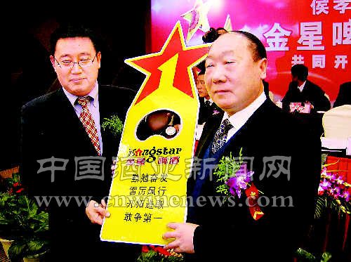 1月9日,河南郑州索菲特国际酒店。当侯孝海(左)从金星啤酒集团董事长张铁山(右)手中拿过象征金星权力的金钥匙时,侯孝海的去向终于尘埃落定。