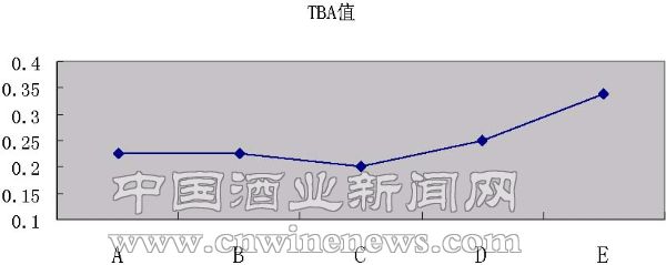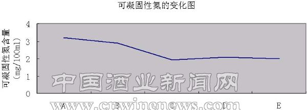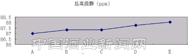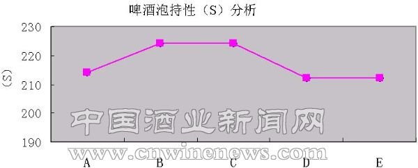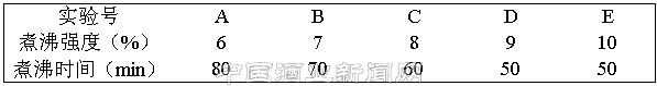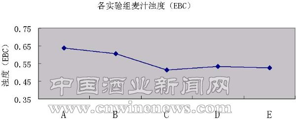 麦汁制备过程中,煮沸过程将是影响麦汁组成、浓度、色度及可凝固性氮的变化的关键一步,也是麦汁制备时能耗最高的工序。合理控制煮沸时间及强度对啤酒的非生物稳定性及口味有非常重要的作用。本文主要讨论的是在不同煮沸时间和不同煮沸强度下对啤酒生产过程中相关指标变化的影响。 煮沸强度是指单位时间内蒸发出去的水分。煮沸强度越大,则麦汁对流性越好,蛋白质的凝聚析出越充分。但煮沸强度过大,会加速麦汁的成色反应,同时会破坏麦汁的龙丁区分,影响啤酒的泡沫性能。煮沸时间越长,凝固的蛋白质数量越多,但过长,则会使一些已凝固的蛋白质及其复合物重新复溶。 笔者通过对不同煮沸时间和不同煮沸强度综合分析,设计啤酒不同煮沸强度与煮沸时间的组合(见表1)。 1.各处理中,定型麦汁可凝固性氮的变化见图1。 从图1可以看出,随着煮沸强度的增加,可凝固性氮含量总体呈下降趋势,由于煮沸时间的不同,D实验和E实验有上升的迹象。通过煮沸强度在8%左右,煮沸时间维持在一个小时,可凝固性氮的含量最低。 2.各处理定型麦汁的浊度比较见图2。 从图2可以明显看出,C、D、E处理的麦汁浊度基本相当,表明随着煮沸强度的增加,浊度有呈下降的趋势,但随着煮沸时间的缩短,麦汁的浊度没有大的变化。 3.各实验组啤酒的泡持性分析见图3。 从图3中分析得出,B处理和C处理酿造出的啤酒具有相当的泡持性能,D处理和E处理同样如此。随着煮沸强度的增加,啤酒的泡持力有先升后降的趋势。对煮沸时间分析也得到同样的结论。表明在煮沸过程中,过度煮沸和煮沸时间过长,都会引起啤酒泡持性的降低。 4.各处理组成品啤酒的TBA值分析见图4。 从图4中不难看出,随着煮沸时间和煮沸强度的增加,总体上TBA值略有上升的趋势,C处理相对较低。表明在麦汁煮沸过程中,较低的煮沸强度对TBA值的影响比较小;随着煮沸强度的加大,影响啤酒老化的前驱物质在不断地增加,麦汁氧化的程度在上升。因此,煮沸过长和煮沸过度都将增加啤酒老化的前驱物质,使麦汁已凝固的蛋白质重新溶解和啤酒的色泽变深。 5.各处理组啤酒总高级醇分析见图5(运用分光光度计测定高级醇含量)。 从图5分析,各处理组的总高级醇含量差别不大,因此,对上述实验中通过煮沸时间和煮沸强度的变化对成品啤酒的高级醇没有较大的影响。 6.保质期预测分析见图6(预测6个月的啤酒保质期)。 通过对煮沸强度和煮沸时间的变化作为试验麦汁和啤酒的指标,并最终分析啤酒的非生物稳定性。从图6看出,C处理的浊度最低,D、E处理次之。表明煮沸强度在8%左右,煮沸时间控制在60分钟的麦汁煮沸工艺生产的啤酒,具有较好的非生物稳定性,啤酒的保质期最长。