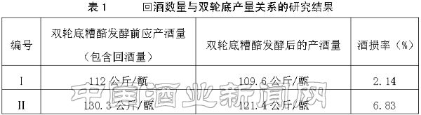 回酒量对双轮底产量影响的研究