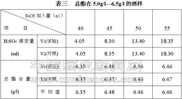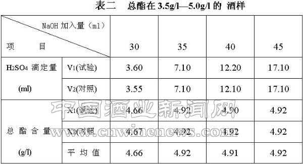 回流皂化温度控制在92℃,并且要将所测酒体完全浸入在水浴中,若水浴锅中水太少,酒液的一部分或全部在蒸汽浴中,导致副反应产生,测定的总酯会偏高,使引入误差。