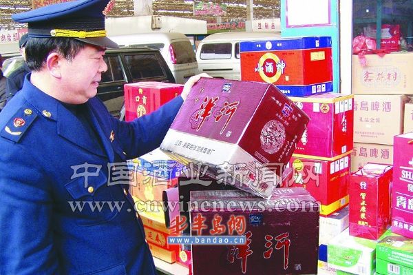 “不仔细看,还真看不出和真牌子有什么区别!”1月22日上午,山东省青岛市李沧工商分局执法人员在辖区某大型批发市场检查白酒时,查获假冒的“
