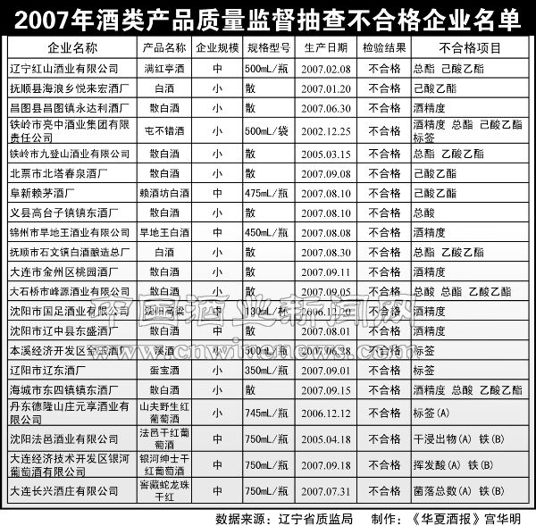 《华夏酒报》记者了解到,针对此次抽查中发现的质量问题,辽宁省质监局已责成各市局要严格按照有关法律法规的规定,对抽查中产品质量不合格的企业依法进行严肃处理,并限期整改。