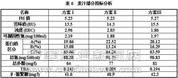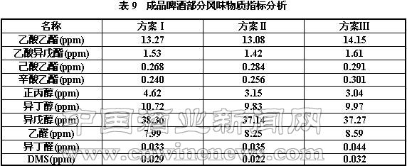 被世人称为“捷克黄金”的SAAZ柔香型啤酒花享誉全球,是啤酒花之极品,有着悠久的种植历史,具有香气纯正、柔美、优雅的特点,其独特的香气形成与捷克的气候、土壤、年份和专业的种植技术密不可分。我们采用了萨兹香花替代颗粒苦花的酿造工艺研究,笔者就此谈谈应用萨兹香花酿造啤酒的一些体会。 1.萨兹香花应用的可行性 1.1 萨兹香花的特点 法呢烯含量高达15%以上,香叶烯含量低,使其香气纯正柔美;葎草酮含量低且合葎草酮含量也很低,约在25%左右,含量少的异合葎草酮使得啤酒泡沫丰富,苦味愉快;萨兹香花中多酚含量高,其中一些多酚能造成人“口渴”的感觉和再饮欲;酒花油中含硫物低,不会给啤酒带来不愉快的气味。 1.2 萨兹香花的酿造功能 赋予啤酒细柔的苦味;赋予啤酒优雅纯正的柔美香气和香味;赋予啤酒无可比拟的可饮用性;赋予啤酒更细腻丰富的泡沫,持久的泡沫附着性;抗腐败微生物和在麦汁煮沸时促进热凝固物形成;其中的某些多酚物质增强了啤酒的抗氧化能力和非生物稳定性,保持啤酒的新鲜度。 1.3 萨兹香花的品系特征(见表1) 2.萨兹香花应用的实验研究 2.1 糖化配料与工艺 (1)实验用原料麦芽部分指标分析与搭配(见表2)。 实验用大米为安徽稼仙米业集团生产的当年杂交米,其部分指标分析及配比(见表3)。 (2)酿造用水符合企业内控标准,铁、铜等变价金属离子含量很低,不会对酒花及浸膏的α-酸异构、酵母发酵以及啤酒稳定性等造成影响。 (3)糖化酶法工艺(见图1) 2.2 为了确保实验的安全性,在本次大生产实验前期,我们利用公司1KL的中试发酵设备进行了数次摸索实验,在此基础上确定了以下几组大生产酒花添加工艺方案(见表4)。 实验用酒花及浸膏α-酸含量(见表5)。 2.3 发酵工艺 采用低温一罐法发酵,麦汁满罐后16、24、36小时各排放一次凝固物,贮酒温度为-1.0-0.0℃,贮酒时间为7天。酵母代数为2代,酵母满罐细胞数为13-15×106个/ ml,死亡率<3%,酒龄为20天。 2.4 清酒均按同样工艺稀释成8°P成品啤酒。 2.5 结果与分析 2.5.1 麦汁部分指标分析(见表6) 从以上分析结果看,方案Ⅰ可凝固性氮含量较方案Ⅲ略高,可能与使用CO2酒花浸膏的蛋白质沉淀效果差有关。但方案Ⅰ的麦汁总多酚含量比其它两方案低,后期胶体稳定性可能好些,即可能会提高啤酒的非生物稳定性。 2.5.2 麦汁α-酸异构率(见图1): 从分析数据看,方案Ⅱα-酸异构率比方案Ⅲ高,说明萨兹香花的α-酸异构率略高于颗粒香花B,方案Ⅰα-酸异构率最高可能与CO2酒花浸膏及添加工艺有关。 2.5.3 成品啤酒分析 (1)常规指标分析(见表7) (2)保质期指标分析(见表8) 从成品常规指标和保质期分析结果看,应用萨兹香花酿造的啤酒成品浊度和经贮存6个月后的浊度指标符合国标优级品要求。而且泡持性也很好,三方案浊度和泡持性指标相近。方案Ⅰ苦味质略低,可能与添加工艺有关。其余各指标均在工艺控制合格范围内。 (3)部分风味物质指标分析(见表9) 从以上分析结果看,三种实验方案生产的啤酒风味物质含量无明显区别,而且基本在正常控制范围内,因此,萨兹香花的应用对发酵和啤酒风味、口感质量无太大影响。 2.6 成品酒品评分析 品酒小组由公司经过专业训练和严格考核选拔的5名品酒员组成。先选用公司任意一种产品进行品评,在没有要求统一评分标准的情况下评分,再统计行归一化权重,分别统计出各项的权重后,再品评本实验三个酒样并综合统分(即评分结果乘以相应项的权重)。 (1)任意样品评结果(见表10) (2)实验样品评结果(见表11) 从品评结果看,使用萨兹香花的酒样综合评分高于使用颗粒香花B的酒样,而且萨兹香花和CO2酒花浸膏搭配的酒样综合评分高于颗粒酒花A与萨兹香花搭配的酒样。因此,在实验方案Ⅰ的基础上进行工艺优化,能够生产出酒花香气柔和、苦味细柔、口感协调的啤酒。 3.结束语 3.1 应用萨兹香花不会对啤酒质量造成负面影响,只需简单调整酿造工艺。 3.2 萨兹香花对改善啤酒香味的优点是无可置疑的。萨兹香花和CO2酒花浸膏的搭配使用,会酿造出质量高、口感好、风味独特的优秀啤酒,其苦味细柔,香味优雅。但必须不断优化酒花或浸膏添加工艺达到最佳利用率、转化率和最低损失率,包括添加时间、添加量、煮沸工艺条件以及煮沸助剂的应用等。 3.3 必须指出的是,萨兹香花价格较高,吨酒成本比用颗粒苦花的略高。但由于其独特的香气特点,更利于得到消费者的青睐,能提升啤酒档次,从而提高经济效益和啤酒的市场竞争力。