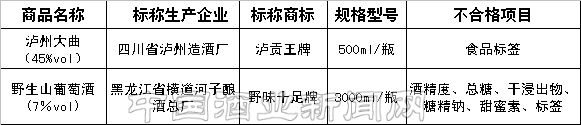 其中,黑龙江省横道河子酿酒总厂生产的“野味十足”牌野生山葡萄酒存在严重的质量问题,该产品不仅酒精度、总糖、干浸出物不符合质量标准要求,还加入了果酒中不允许添加的甜味剂糖精钠和甜蜜素。