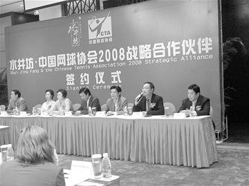 日前,四川水井坊股份有限公司与中国网球协会2008战略合作于成都香格里拉酒店达成协议。此次战略合作是水井坊与中国网球协会继“水井坊杯中国大城市业余网球团体赛”之后再次强强联手、共谋发展。高尚品牌与高雅运动亲密结合,将共同演绎中国高尚生活的健康优雅魅力。