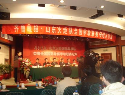 2月29日下午,大众报业集团和齐鲁晚报在山东新闻大厦为勇夺2007年全国国际象棋甲级联赛冠军的齐鲁晚报·山东火炬队举行了盛大的庆功仪式。
