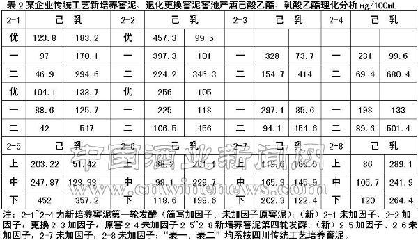 在浓香型白酒的生产过程中,“窖泥是基础”、“曲药是动力”、“工艺是关键”。窖泥质量对基础酒质量有着决定性影响,要抓好基础酒质量,就必须抓好窖泥质量。目前,浓香型酿酒企业提高窖泥质量的途径主要有以下两种: 第一,采用传统的窖泥培养和养护方法,即利用酿酒资源类有机物人工培养窖泥,靠传统酿酒工艺进行窖泥养护,通过多轮发酵,逐渐提高窖泥质量。这种方法总体上是行之有效的,但窖泥成熟期较长,见效慢。 第二,通过向窖泥中投放己酸菌培养液来提高窖泥中主要功能菌——己酸菌的含量,以此来提高窖泥质量。而窖泥微生物群落是经过漫长的发酵过程自然富集而成的,它们在发酵过程中通过协同作用促进窖泥微生物环境的演变,而窖泥微生态环境的演变又反作用于窖泥微生物,促进窖泥微生物群落结构的演变。通过这种窖泥微生物与窖泥微生态环境不间断的作用与反作用,使窖泥质量不断得到提高。但突然增加某种窖泥功能菌的含量,会打破窖泥微生物群落的均衡生长,难以发挥较好的协同作用,无法持续提高窖泥质量。目前,我们白酒行业所称的己酸菌,确切地说应属于工业名称或习惯名称。因优质窖泥中的己酸菌与甲烷菌是共栖关系,所以许多特性是由共栖关系反映出来的,即使分离出来的己酸菌纯种也难与共栖中和特征及实际生产情况完全相符。实践证明,运用此法培养的窖泥,只能短时间内提高窖泥质量,酿不出真正的高品质白酒,而且每隔两至三年左右,就得更换一次窖泥。 总体上讲,通过以上两种途径来提高窖泥质量均不甚理想。笔者认为,既要使窖泥微生物在原生态状况下均衡生长,又要加快窖泥成熟的速度,就必须寻找相适宜的原生态窖泥因子进行复制,以强化窖泥微生物协调生长繁殖。同时,在培养窖泥时必须严格执行传统工艺,促进窖泥生态环境迅速优化。须杜绝将窖外物质,如烂苹果、烂梨、猪肠衣水、污泥、沼气泥、藕塘泥及微量化学元素等进入窖内。因这些物质不利于窖泥微生物均衡生长,甚至会导致有害的微生物过度滋生,造成窖泥过早退化和板结。 笔者通过在科研工作中的反复实验、筛选,最终从上百年优质老窖泥中寻得两株窖泥因子菌。笔者以这两株因子的原生质体为基础,经过原生质体融合,进行培养分离后得到一株窖泥因子菌。经过长达十余年的不断实验、分析总结,最终投入生产。从实验室,中试,扩大到生产,通过感官及理化分析,均能确认这是一株相当有价值的窖泥因子菌。它突出表现在能均衡窖泥中微生物的生长繁殖。 经取样观察:窖香较浓,断面呈发泡状,灰褐色,柔熟。 理化分析:PH值5.0—7.2;水分30—35%;细菌中杆菌、球菌均高于对比窖泥;窖泥有机酸提高幅度较大;基础酒己酸、乳酸、己酸乙酯、乳酸乙酯及其它酸醇酯协调;酒体香气浓郁、干净、味浓厚、醇正绵甜;有以己酸乙酯为主体的浓香复合香味;其己乳比,不管是窖泥还是基础酒,它们的比值都是己酸乙酯比乳酸乙酯高。这充分说明,利用原生态微生物菌类物质,比采用其它微生物来提高窖泥微生物生长繁殖对提高窖泥质量更起到关键性作用。 2006年7月,笔者在四川宜宾培养窖泥及对退化或板结窖泥微生物复壮,经一年多4轮发酵周期,取其窖泥与其所产基础原酒进行理化分析(见表1、表2)。 2006年12月29日,笔者在山东某企业以原生态浓香型窖泥微生物“复壮因子”配制的三种人工培养窖泥方案,投入酿酒生产,经五轮发酵周期后,对所产原酒进行了理化分析。 1.有机物人工窖泥与“复壮因子”相结合方案。 (1)酒样:某酒业公司车间第八班(即浓香多粮酿酒班)各段浓香多粮原酒。 (2)酒样气相色谱分析结果(详见表3)。 2.有机物人工窖泥加复壮因子与原无机窖泥结合方案。 (1)酒样:某企业粮酒车间第五班(单粮型酿酒班)单粮原酒。 (2)酒样气相色谱分析结果(详见表4)。 3.复壮因子与无机窖泥结合方案。 (1)酒样:某酒业公司车间第一班(单粮型酿酒班)单粮原酒。 (2)酒样气相色谱分析结果(详见表5)。 有机物人工新窖泥加“复壮因子”与原无机窖泥结合方案:40%的有机物人工新窖泥,加1%的“复壮因子”与60%的无机窖泥相结合的方案。 “复壮因子”与报废更换无机窖泥相结合的方案是:1%复壮因子,30%新黄泥,30%窖皮泥,40%原窖的报废更换无机窖泥,0.75%大曲粉,底窖母糟20%结合方案。 从上述三个方案历经近一年的酿酒生产后,在同工艺、同操作、同糟醅、同环境的同等条件下,其原酒的内在理化质量,均有不同程度的协调性提高。它具有浓香型大曲酒浓郁、味浓厚、绵甜、净爽、香长的典型的以己酸乙酯为主体复合风味,具备了典型浓香型大曲酒的基本特点,理化指标中己乳比例关系协调。 该项目现已投入到山东、四川等多家企业生产中。在山东,由于地理环境因素,山东窖泥基本上是采用无机窖泥,它是每年补充人工筛选己酸菌培养的窖泥,但几年后必须更换全部窖泥。通过该项目投入到山东企业窖泥中,它便快速复壮无机窖泥中原有的原生态微生物,各种功能性微生物协同作用能力迅速增强,窖泥质量迅速提高,基础酒质量提优率增大。同时,在山东新培养窖泥中使用该项目,通过作对照实验,从窖泥到基础酒质量均有较大提高,说明该项目不受环境因素影响,能有效提高各地企业窖泥质量。