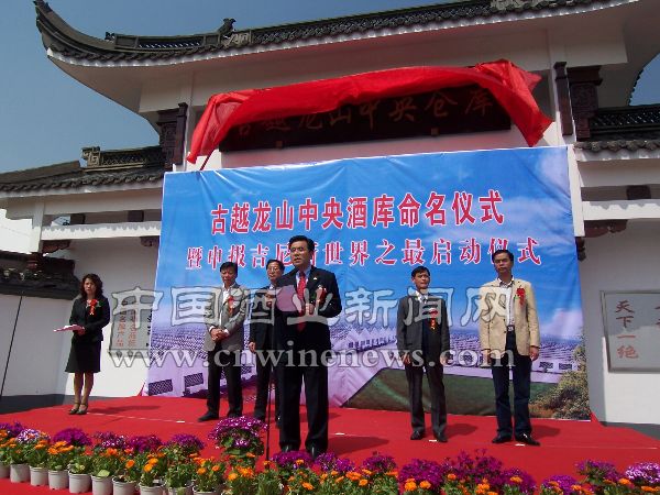 4月10日,“古越龙山中央仓库”命名仪式暨申报吉尼斯世界之最启动仪式在浙江古越龙山绍兴酒股份有限公司中央仓库举行。