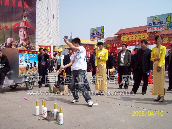 “国际啤酒”山东省春季糖酒会上耍杂技