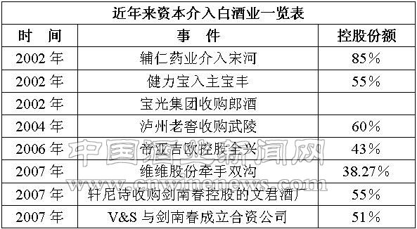 编者按: 中国的经济在成长,中国的白酒企业在成长,这无疑是一个充满机遇的大时代。在这个经济全球化、强者生存的时代,企业最需要的核心竞争力是整合资源的能力。作为整合各种资源的核心纽带,资本运作在企业经营中扮演着越来越重要的角色。 前段时间,茅台欲收购杜康一事在坊间炒得沸沸扬扬。尚且不去追究茅台是否真的会收购杜康,但是通过这件事情传递出一个信号,那就是白酒业的业内资本开始“蠢蠢欲动”了。 业外资本涉足白酒领域已经不新鲜了,随着近期业内资本力量在白酒业内的涌动,是否预示着一个新时代的到来?是否也意味着一场白酒品牌整合的风暴已经不远了呢?近日又有消息称,金六福拟收购一北方白酒企业,其下文又会如何呢?资本与整合,好戏正在不断上演。
