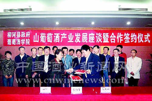 大赛期间,柳河县人民政府还与西北农林科技大学葡萄酒学院就双方关于山葡萄酒产业在产、学、研等方面的全面合作签订了战略合作协议。图为柳河县县长经希军与西北农林科技大学葡萄酒学院院长王华签署合作协议。
