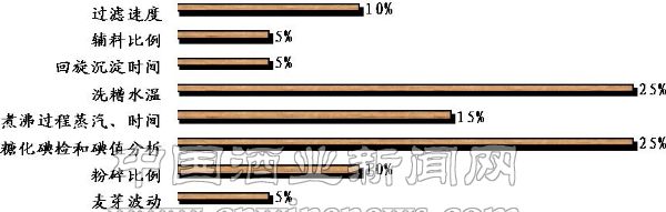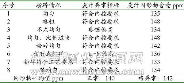 结果表明,粉碎均匀度、粗细比例对麦汁固形物含量的影响不是很大。