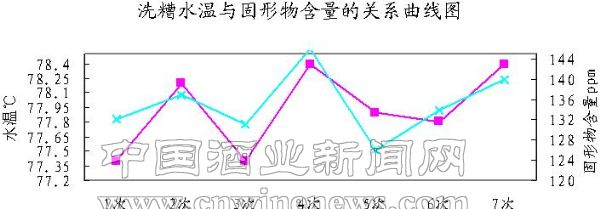 2.4.1  洗糟水温与固形物含量的变化关系