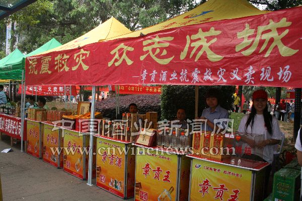 江西章贡酒业从5月14日开始,在号召全公司员工为四川灾区捐款的同时,5月16-18日还在赣州市南门文化广场西园开展了"众志成城 抗震救灾-情牵四川地震灾区"义卖活动,截止到5月21日,员工共捐款2.684万元,义卖捐款2.8847万元,公司直接捐款10万元,江西章贡酒业还决定在22日举行的赣州"爱的奉献"晚会现场再次捐款5万元,这样,该公司通过红十字会累计向四川灾区捐款二十余万元。江西章贡酒业是赣州市惟一的上市公司天音控股(原赣南果业)所属全资子公司,据悉,目前天音控股已向灾区捐款156万元。