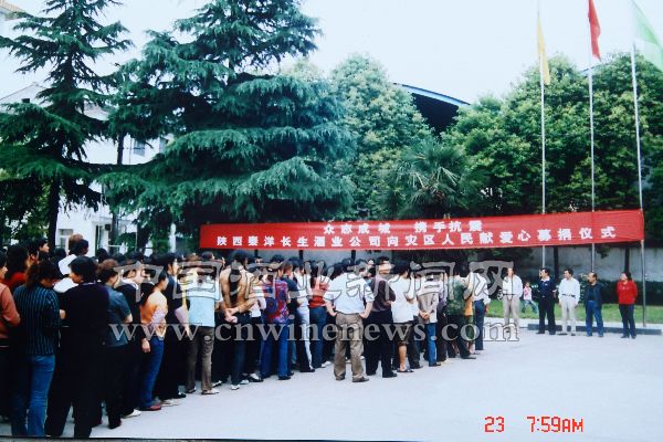 四川汶川大地震波及周边省份,给陕西秦洋长生酒业有限公司造成了高达395万元的资产损失。近日,该公司在组织自救的同时,公司领导及员工积极为灾区人民捐款,共捐款10余万元。