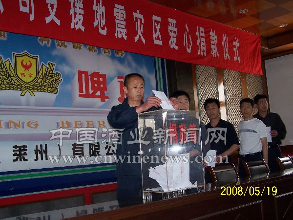 燕京啤酒(莱州)公司向灾区捐款