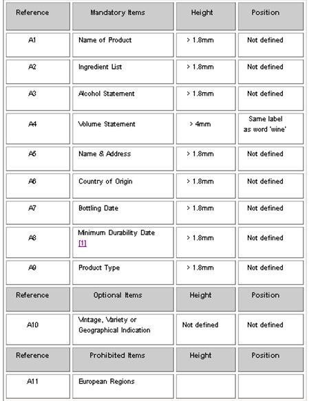 The two most critical pieces of legislation are the wine standard (GB 15037) and the wine labelling law (GB 10344) both of which are administered by the General Administration of Quality Supervision, Inspection and Quarantine of the People’s Republic of China. The following information is taken from the 2005 versions of both documents, which are believed to be current. Furthermore, the wine labelling law is a specific application of the General standard of pre-packaged food labelling, GB7718, of which the 2004 version is believed to be current.