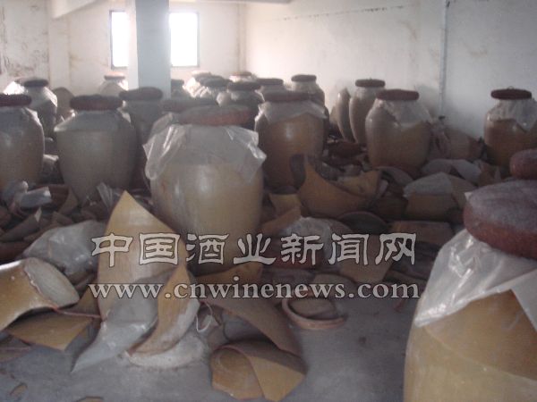 在谢总陪同下,马勇一行先查看了已完全坍塌的包装二车间和一处受损严重的旧办公楼,然后怀着忐忑的心情来到贮存着剑南春优质资产的万吨贮酒库的二层,在储存车间,看到了令人无比痛惜的情景。谢总想大家说,二楼的损失近一半,三楼还要多一些,一楼的酒坛基本完好。因为余震频仍,谢总坚持要求大家离开。