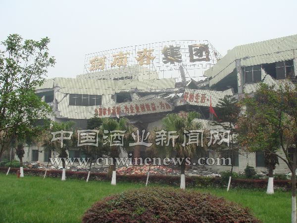 马勇一行辗转到达位于绵竹市春溢路的剑南春酒厂,见到2004年装修后启用的新办公大楼已被震开一道大大的裂痕,成为危楼。这时,谢义贵副总经理正从对面的小院走过来,他说,酒厂抗震自救指挥部就设在办公楼对面的小车班院子里,那里一个二层小楼尚完好无损。在这个小楼的一层,正忙碌着酒厂抗震指挥部的办公人员。